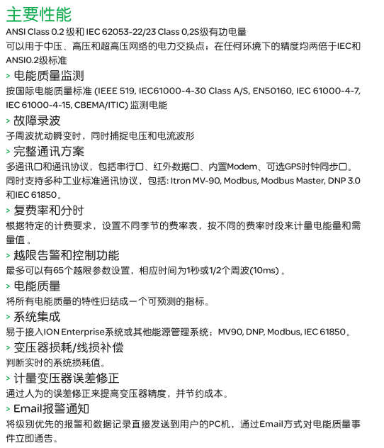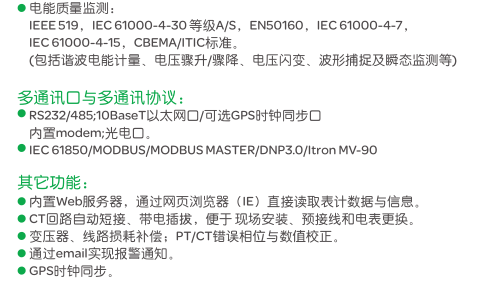 1).電能計(jì)量:ANSI 0.2級(jí)和IEC 62053-22/23 0.2s級(jí)