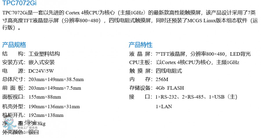 昆侖通態(MCGS)Gi系列TPC7072Gi|產品資料