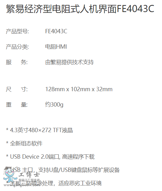 繁易(Fbox)經濟型電阻式觸摸屏FE4043C|產品資料