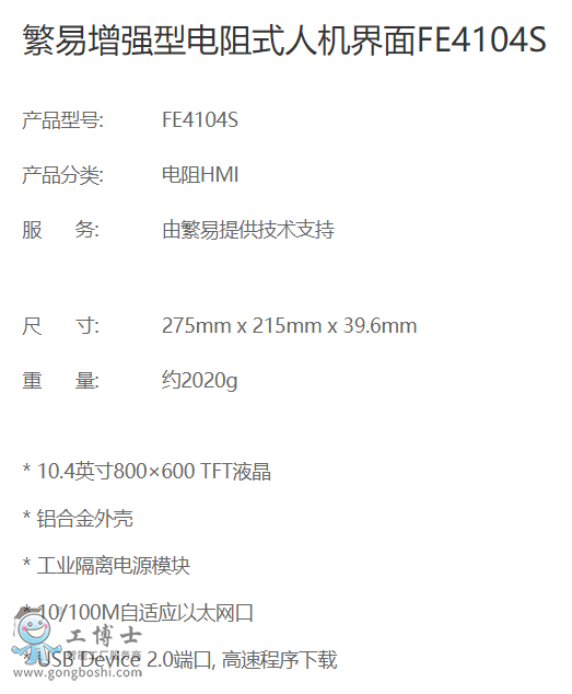 繁易(FBox)電阻式觸摸屏FE4104S|產品資料