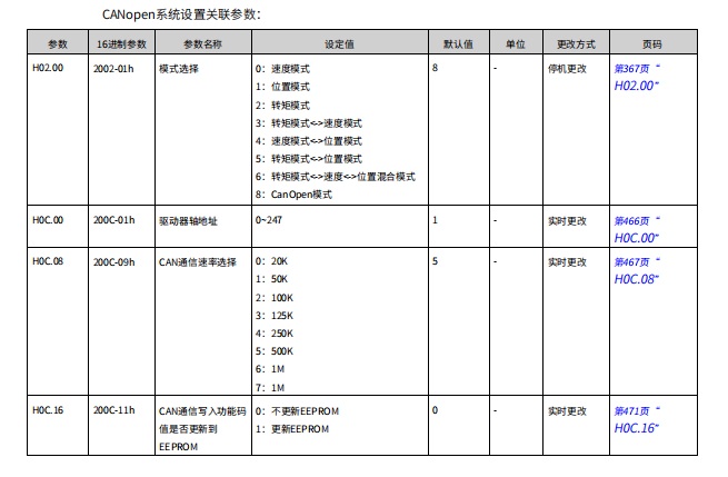 (1)匯川 660C 伺服支持 CANopen 協議,在其手冊中可以看到它使用參數對應的設置
