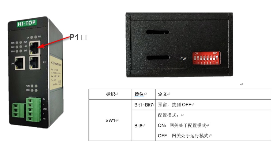 使用 GW Modbus Builder 連接到 HT3S-EIS-COP 網關的 P1 口,并將撥碼第 8 位撥到