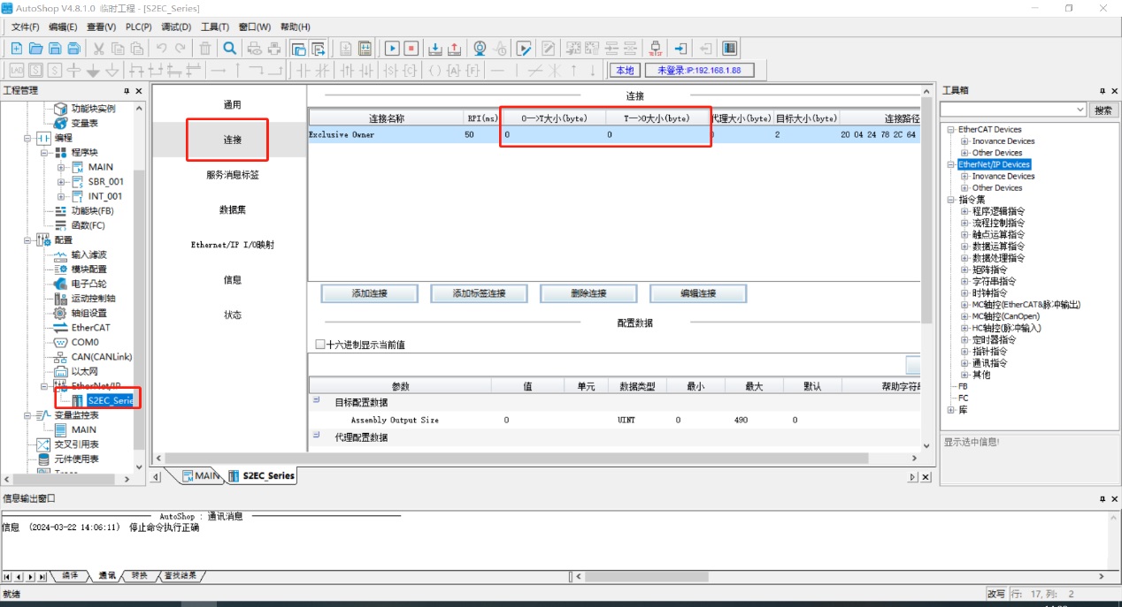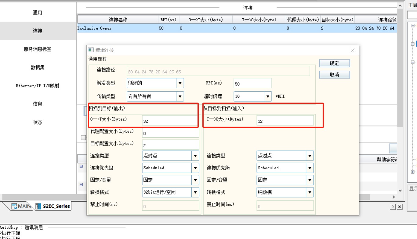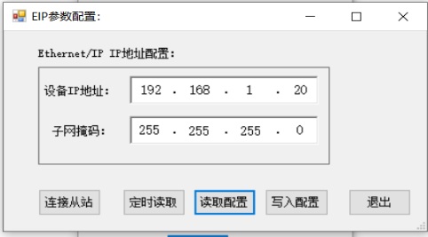 在協議選擇框中選擇“EtherNET/IP 配置”,點擊確認按鈕。
