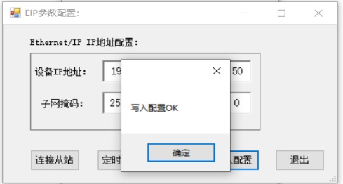 填寫用戶需要的 IP 地址,點擊 “寫入配置”按鈕,寫入成功后,會彈出 OK 的對