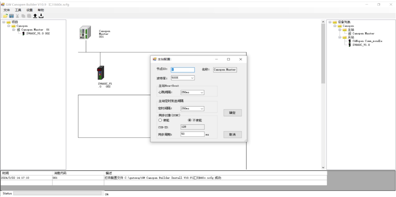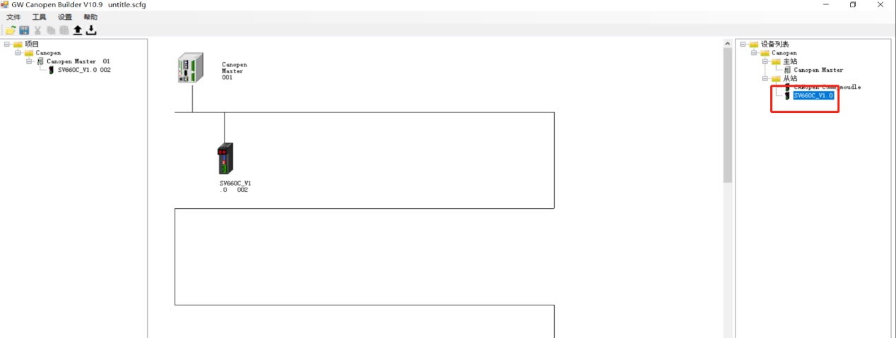 (3)導入成功后,可以在右側設備列表中找到從站設備,如下圖: