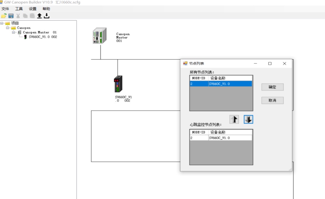 (4)雙擊主站圖標,從所有節點列表里選擇需要添加到心跳監控列表里的從站,