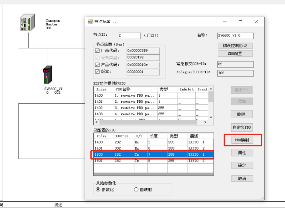 (2)選中 TXPDO(1800),點擊“PDO 映射”按鈕