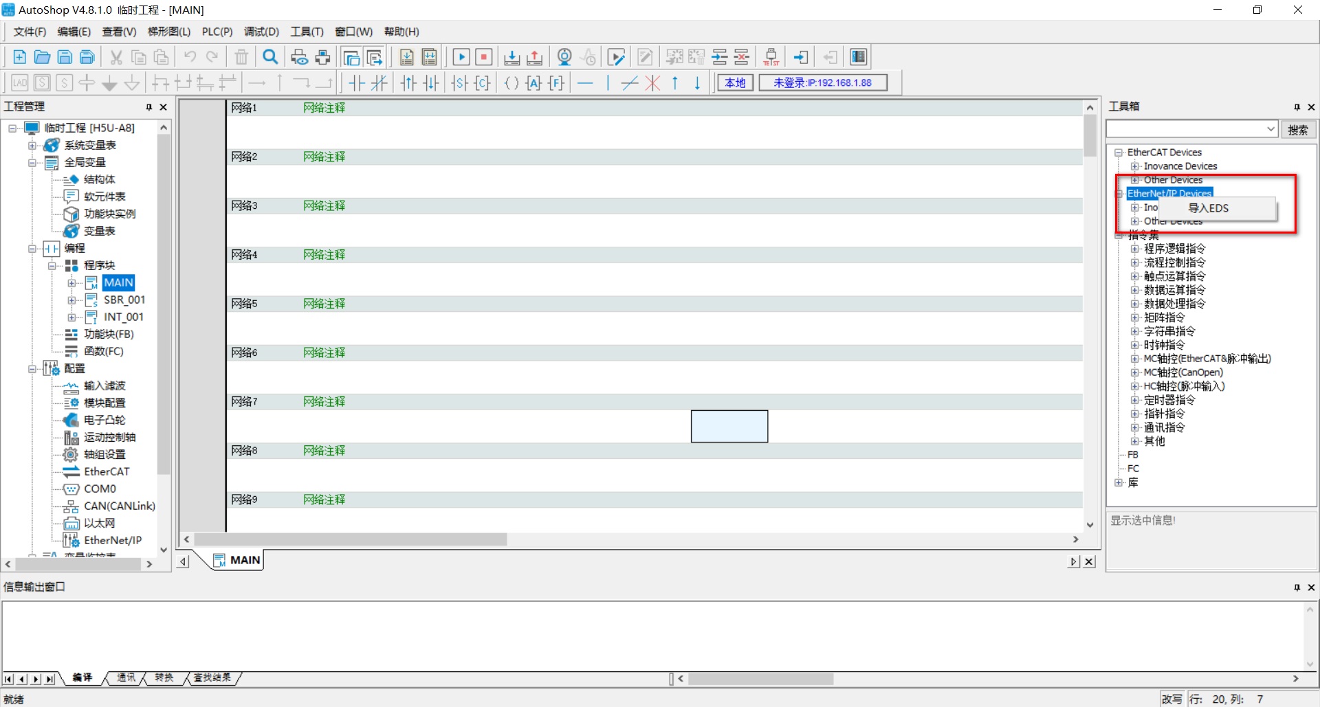 (1) 打開 autoshop 新建一個項目,導入網關的 eds 文件
