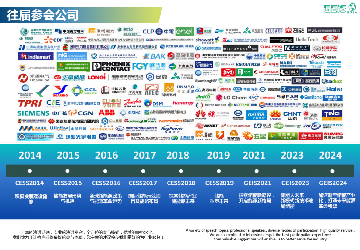 本次大會計劃邀請到600+儲能行業領袖及專家參與,50+國內外頂尖專家演講分享。大會為期兩天,兩個平行分論壇,十個專題,以“加速新型儲能產業化,打造未來能源革命引擎”為大主題,邀請到來自電力電網公司、發電集團、供電局、可再生能源開發商和制造商、電科院、政府政策機構、儲能技術解決方案提供方、工商業用戶、通信基站用戶、儲能系統集成商、綜合能源服務商、電池生產商、光儲充電樁建設方、研究機構及大學、檢測及監控運營方、投融資及咨詢方等企業共赴深圳參與大會。GEIS為國內外儲能行業商業領袖、技術專家提供分享商業案例及交流先進技術的平臺, 同時更成為一批優秀儲能產業企業向與合作伙伴展示企業品牌的重要舞臺。本次峰會將延續往屆大會的國際化、全產業覆蓋大方向,聚焦最新商業模式及前沿技術創新,落地到全球案例分享及實踐應用。