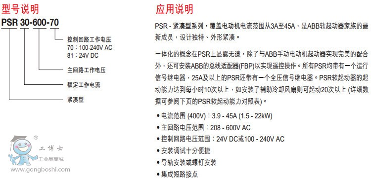 ABB軟啟動器PSS18/30-500L 通用型 7.5KW 18A/30A
