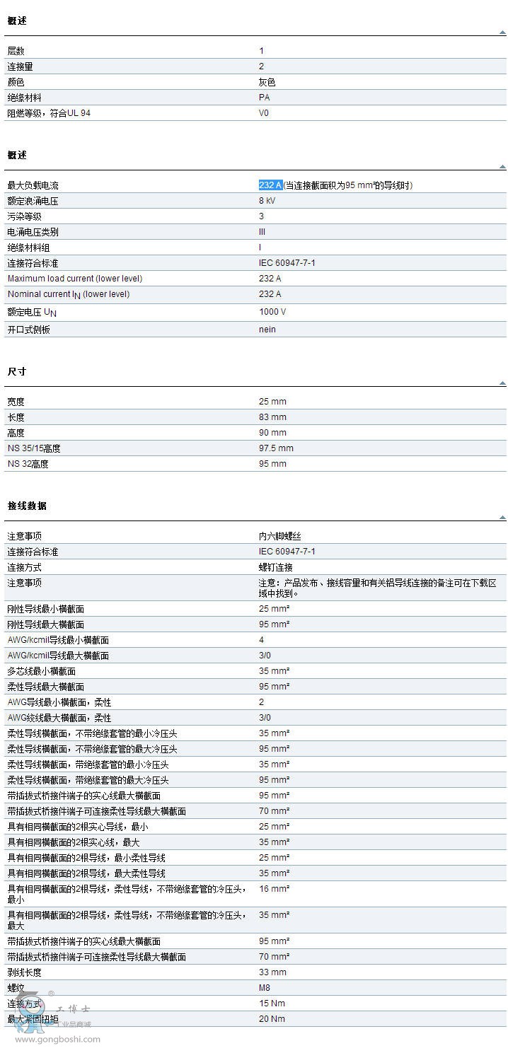 德國菲尼克斯 UKH 95 - 3010013 - 直通式接線端子 負載232A