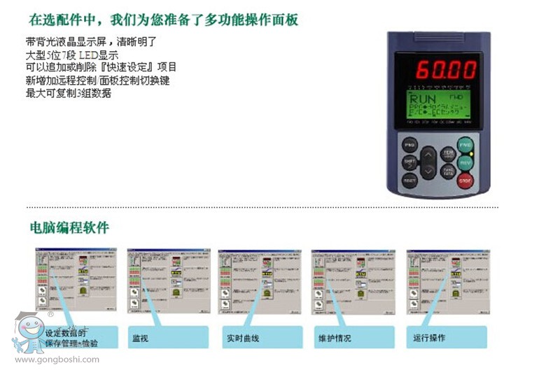 (1)運轉、停止:通過操作面板的按鍵操作(鍵),運轉或停止。