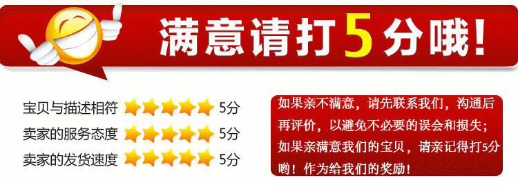我們的每件產(chǎn)品都是經(jīng)過仔細檢查后才發(fā)貨,請買家收貨時確認物品完好后再簽收,為了保障您的權益,簽收前請仔細檢查,驗貨時發(fā)現(xiàn)貨物有問題或運輸損壞,請不予簽收并及時聯(lián)系我們,物流公司返回后我們免費重新發(fā)貨。