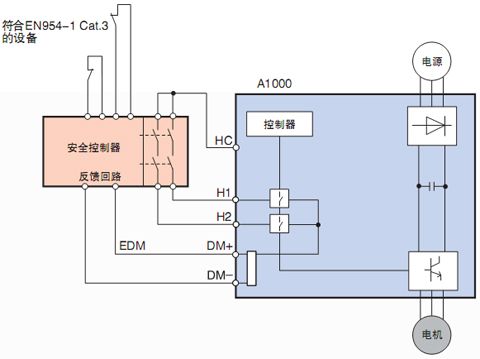 | A1000備有2個安全輸入端子和一個輸出端子。 | |
