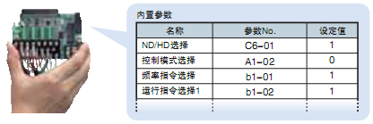 | ■ 從以往產品自動轉換參數的驅動器更換功能,在更換變頻器時,或萬一發生故障進行更換時可省去參數設定的作業 |