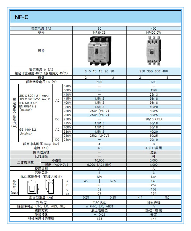 型號: NF450-CW系列            脫扣器電流: 400(A)             操作方式: 手動操作