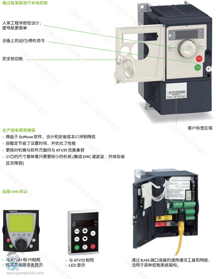 施耐德 變頻器 ATV312HU11N4 1.1kW 三相380~500V,內置EMC