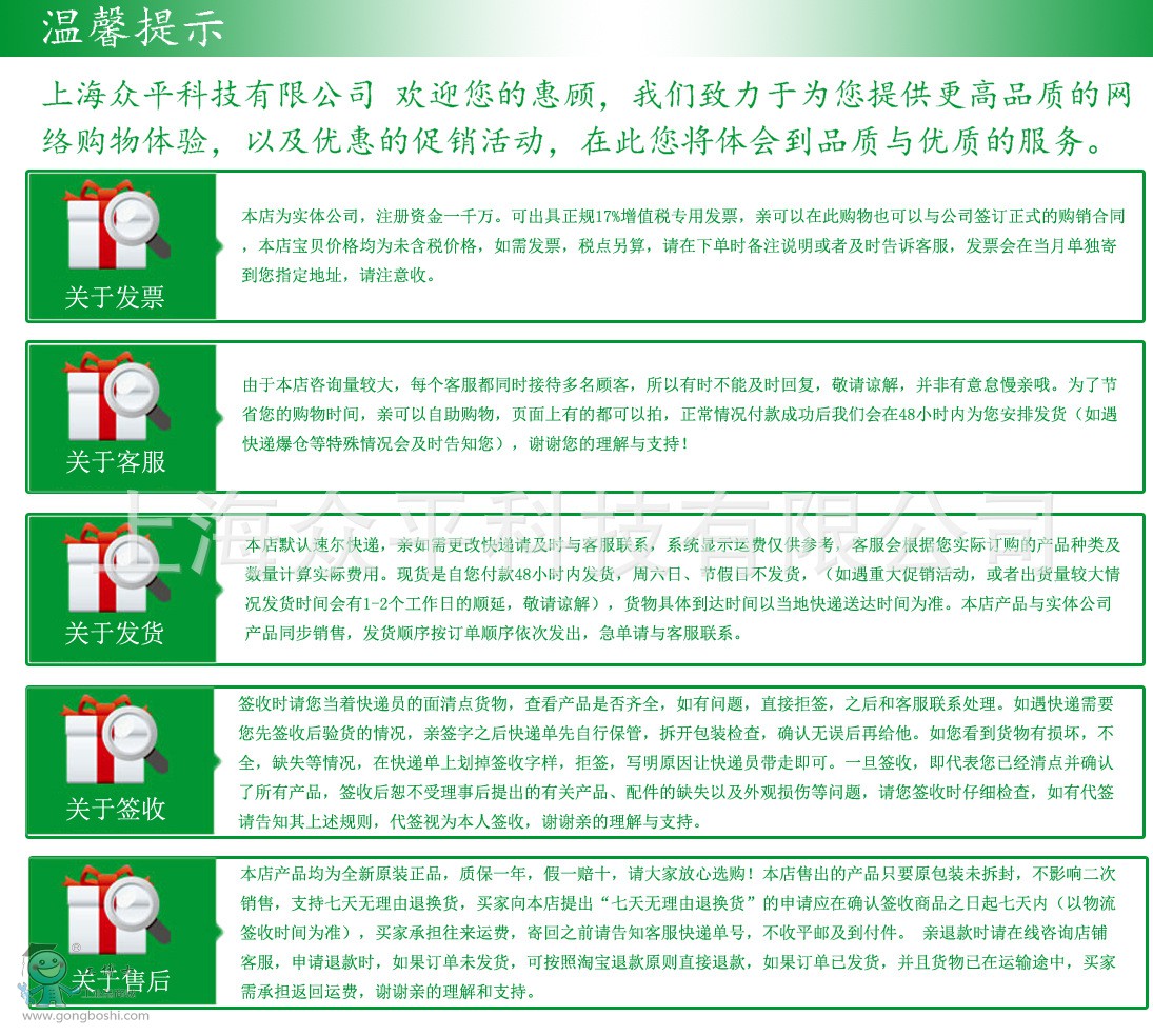 上海眾平科技有限公司售的產品均是官方正品,明碼標價(含17%增值稅),所售產品均有原廠的封 條,絕對 不會出現仿冒、翻新、返修產品,請放心采購!
