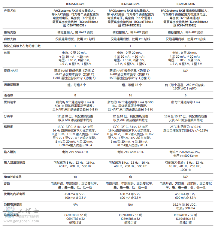 模擬量模塊規(guī)格: