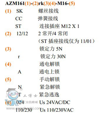 常用操動件型號包括:AZM161-B1 AZM161-B1E AZM 161-B6