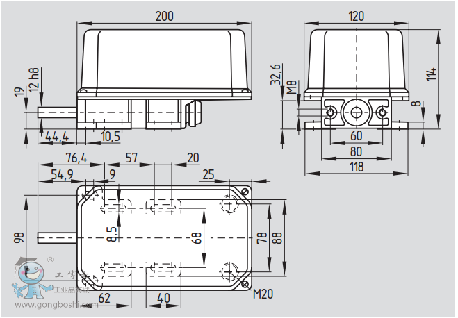 開關的外殼為壓鑄輕金屬材料,并進行材料處理,具有抗海水浸蝕特性。開關的盒蓋為熱塑塑料,牢實耐用,具有抗化學腐蝕性能。開關的轉軸為不銹鋼材料,外部和內部通過一軸承連接。所有密封件抗油污影響,開關防護等級為IP65。