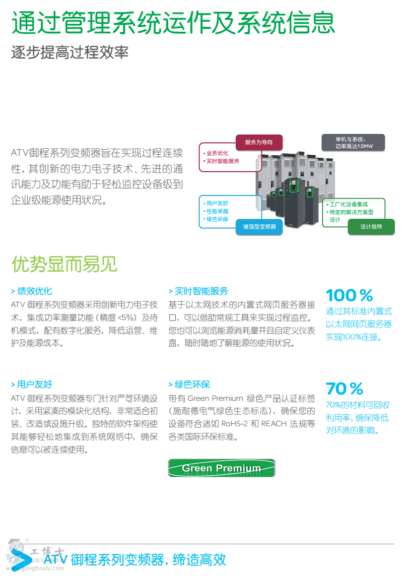 ATV御程系列是業(yè)內(nèi)第一款服務(wù)導(dǎo)向型變頻器,其具有以下諸多特色: