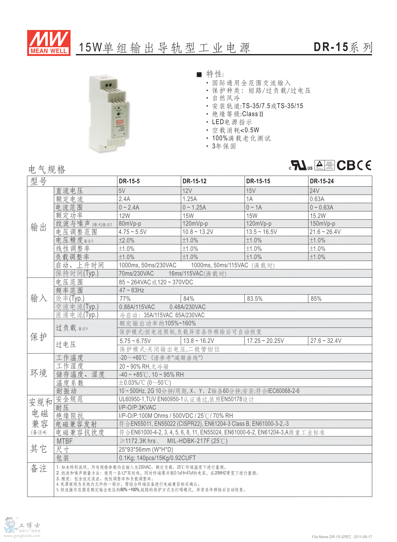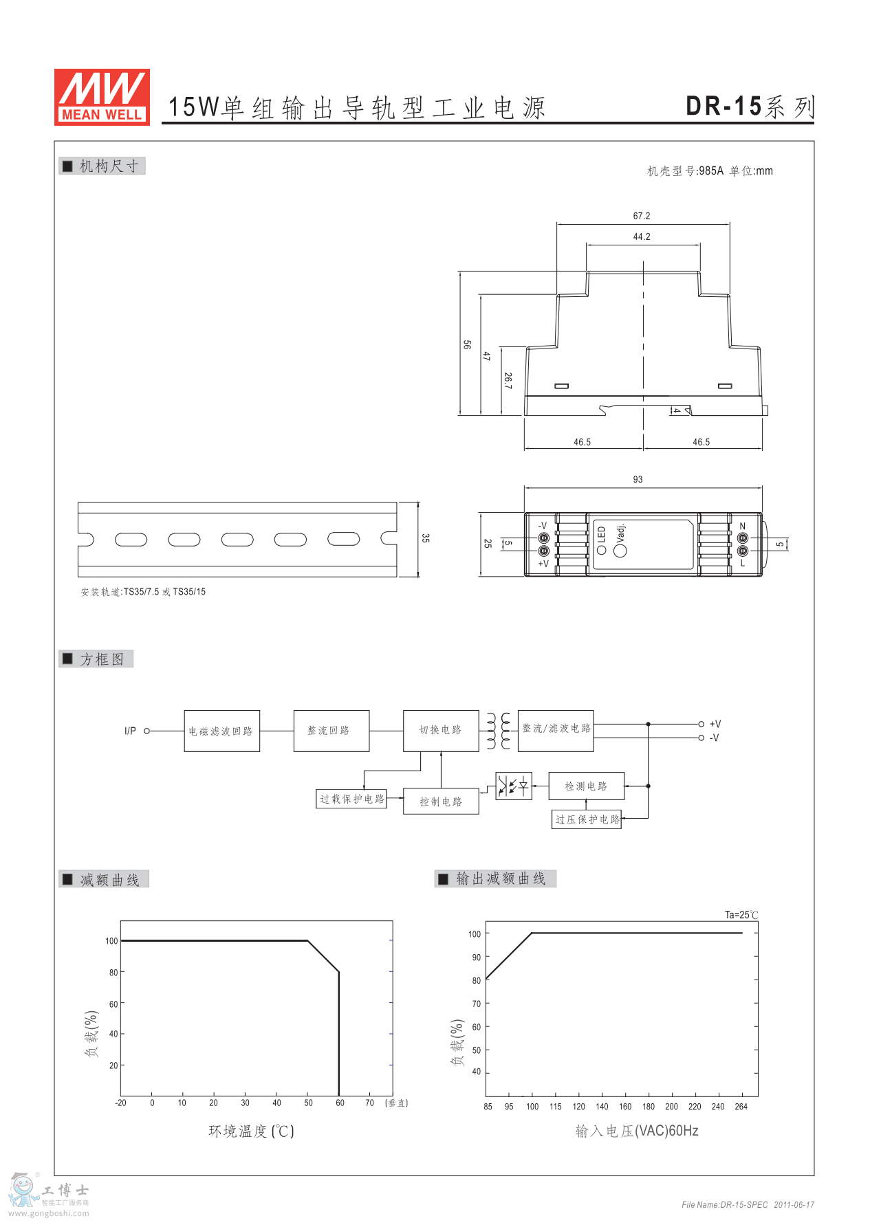明緯導(dǎo)軌式工業(yè)電源DR系列產(chǎn)品說明書: