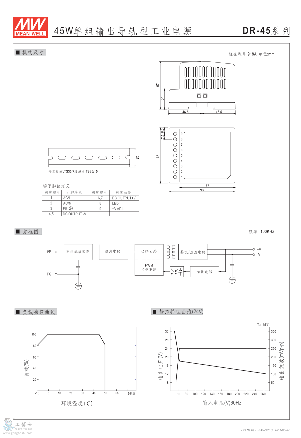 明緯導(dǎo)軌式工業(yè)電源DR系列產(chǎn)品說明書: