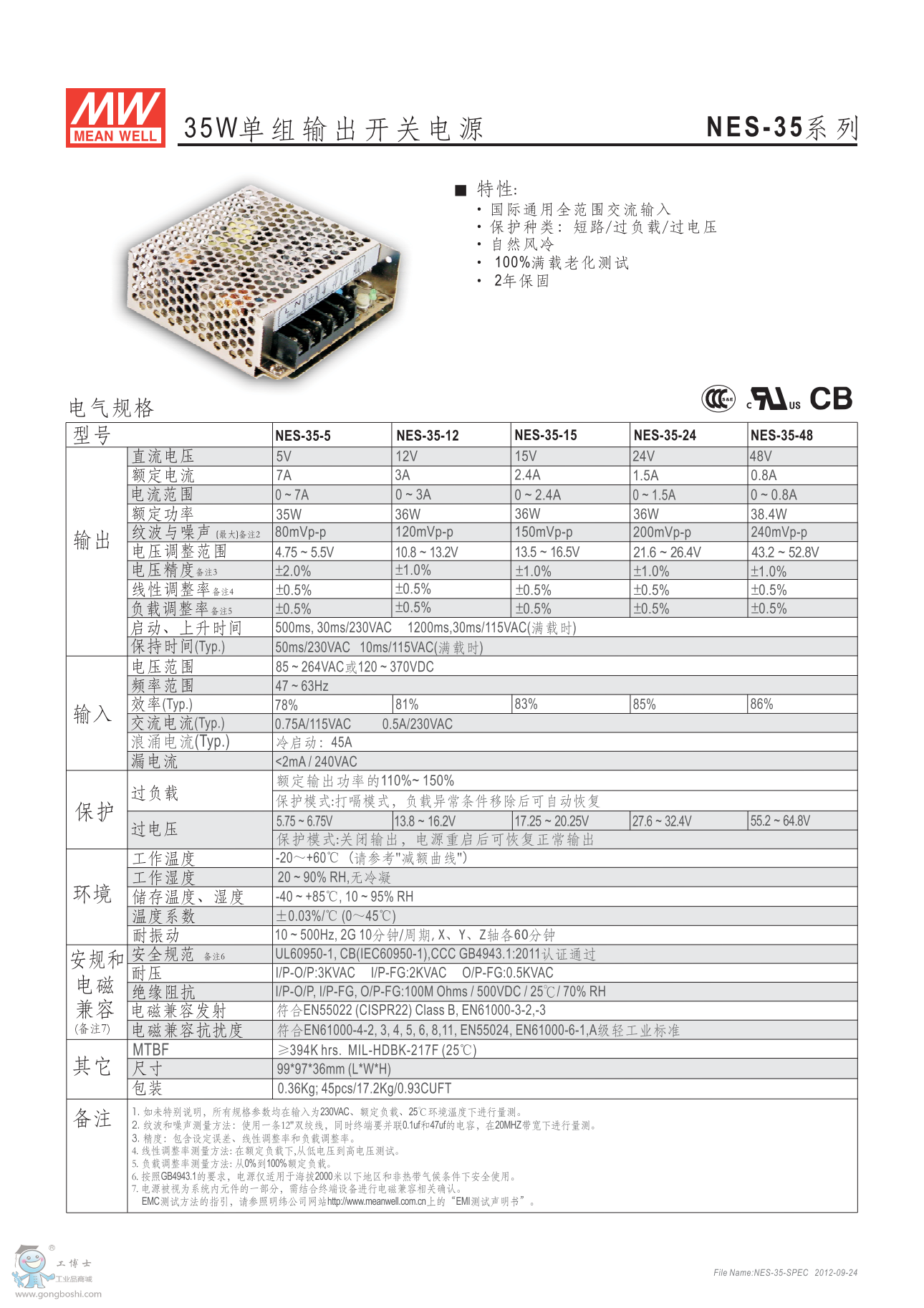 明緯開(kāi)關(guān)電源NES-35-24 經(jīng)濟(jì)網(wǎng)殼型24V