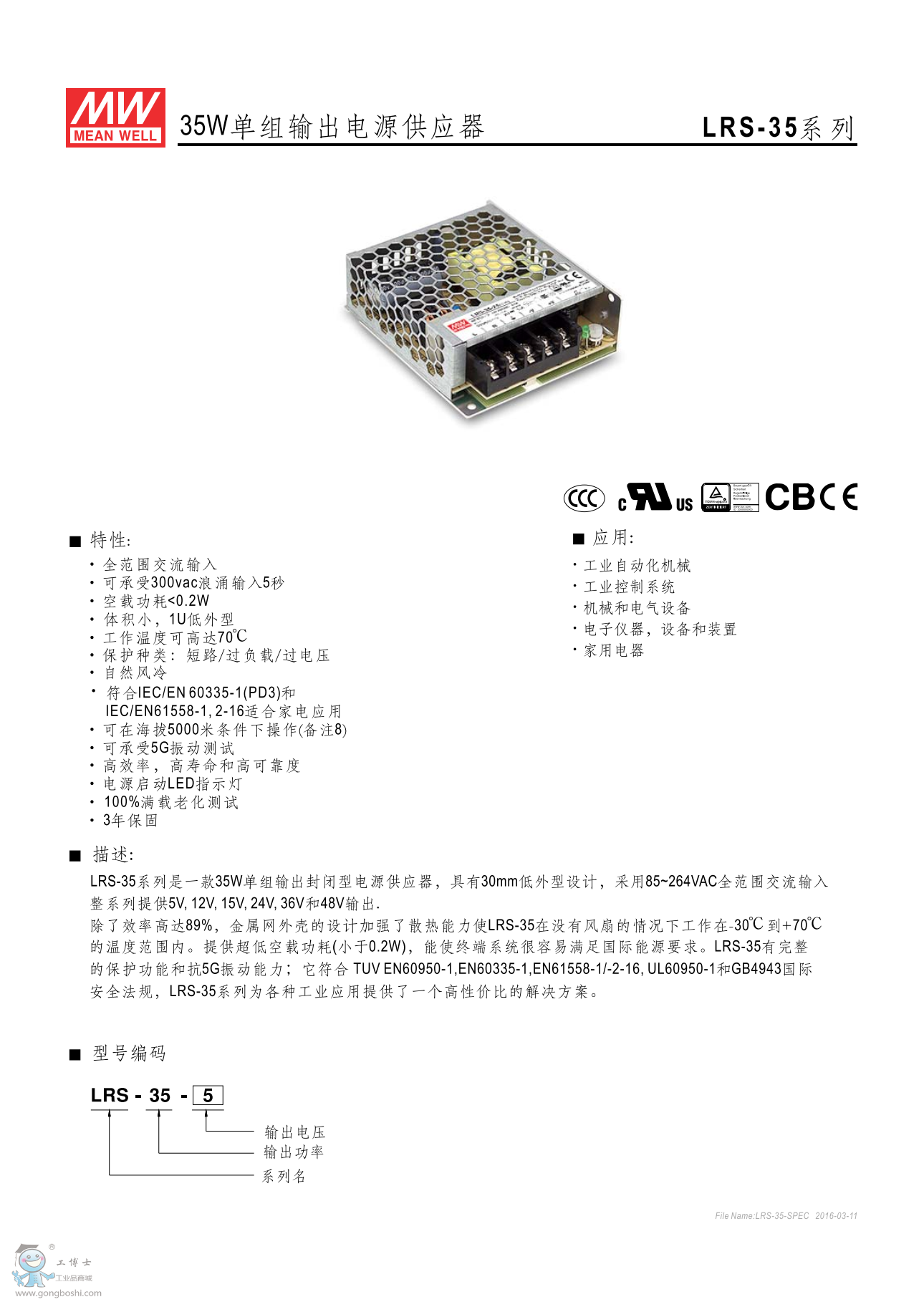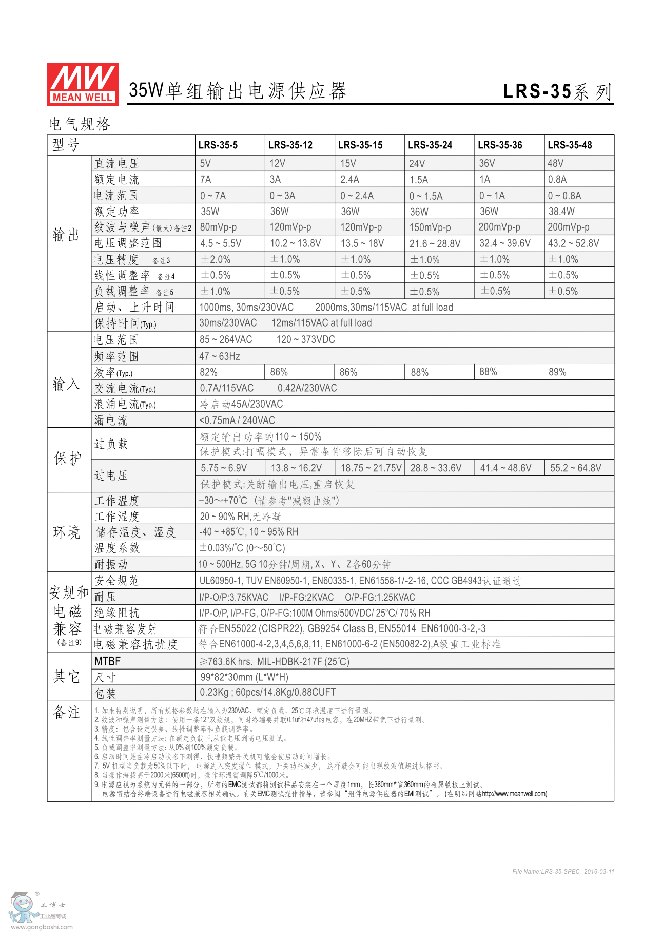 明緯開關電源LRS-35-36 36V1A 可替代NES-35-36