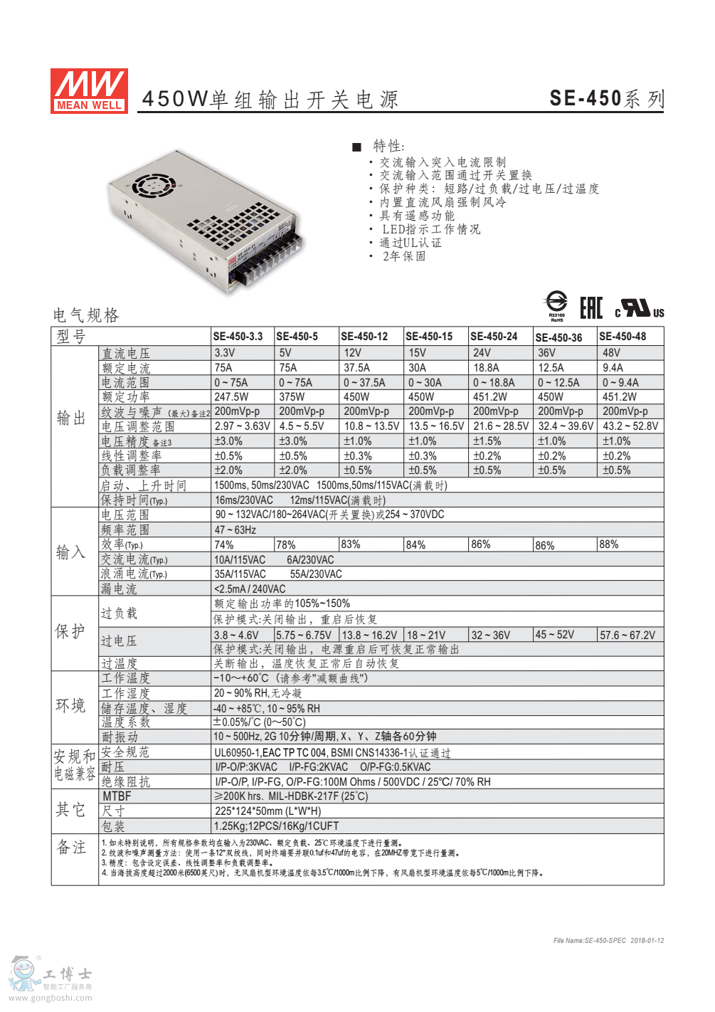 明緯開關(guān)電源SE-450-3.3 3.3V75A