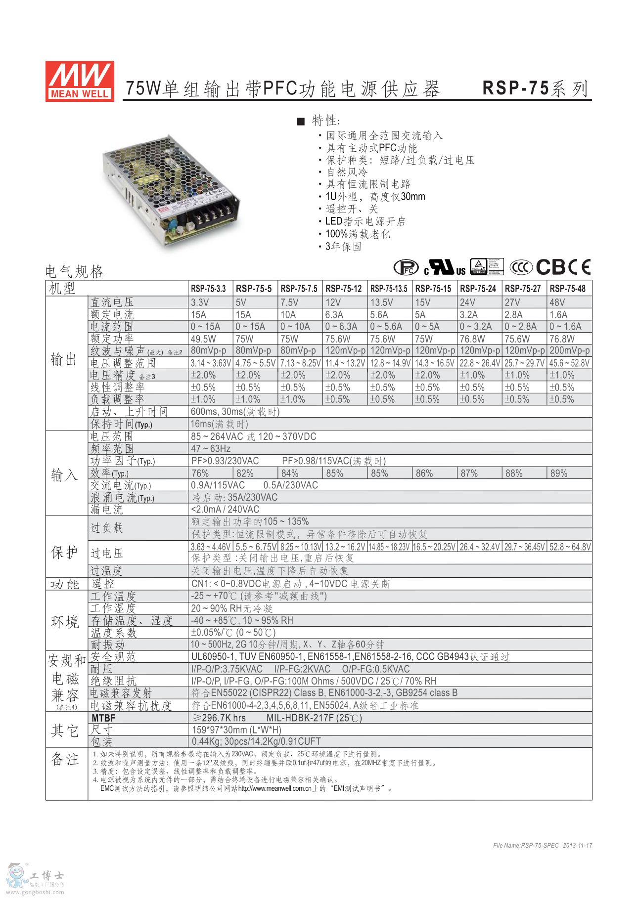 明緯開關電源RSP-75-13.5 13.5V5.6A