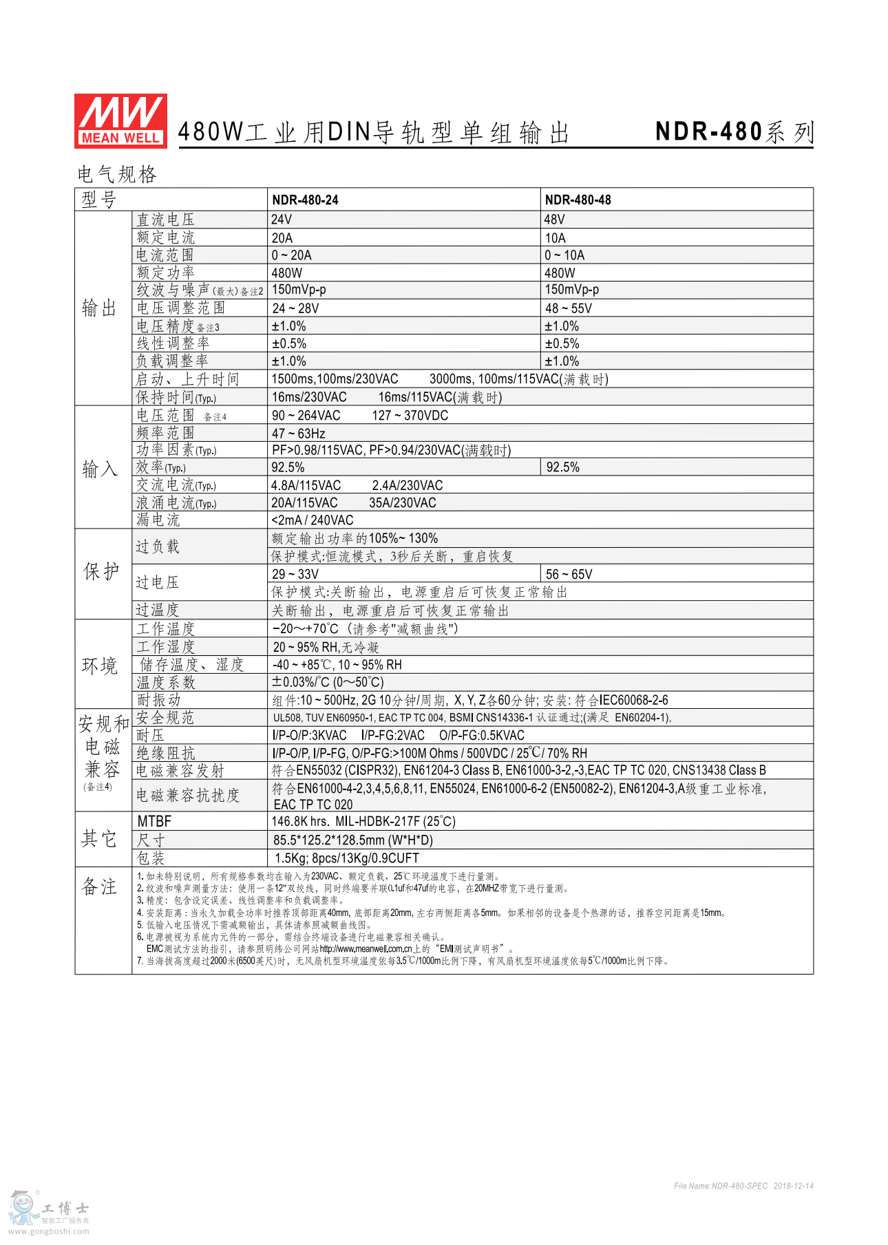 明緯開關電源NDR-480-48 48V10A
