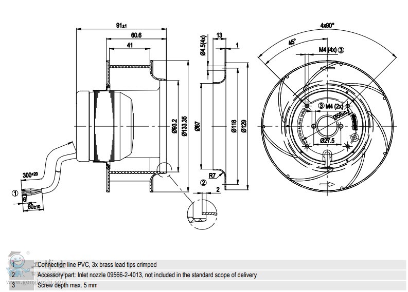 離心風機將空氣沿著電機軸向吸入,并沿著電機徑向排出。離心風機的特點是壓力升高快,這主要依賴于葉輪的寬度、空氣性能特性和適當的大流量�?諝饬髁糠舷嗨贫桑趬毫ο嗤土魉俸愣ǖ臈l件下,流量隨著葉輪寬度的增長成線形變化。