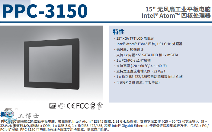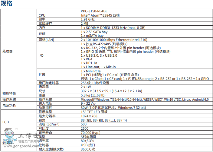 15寸無風扇工業平板電腦,英特爾凌動四核處理器
