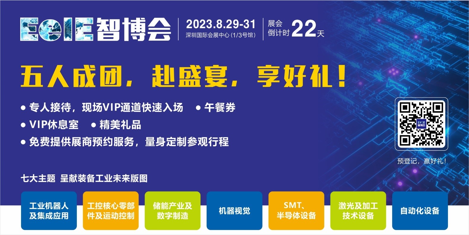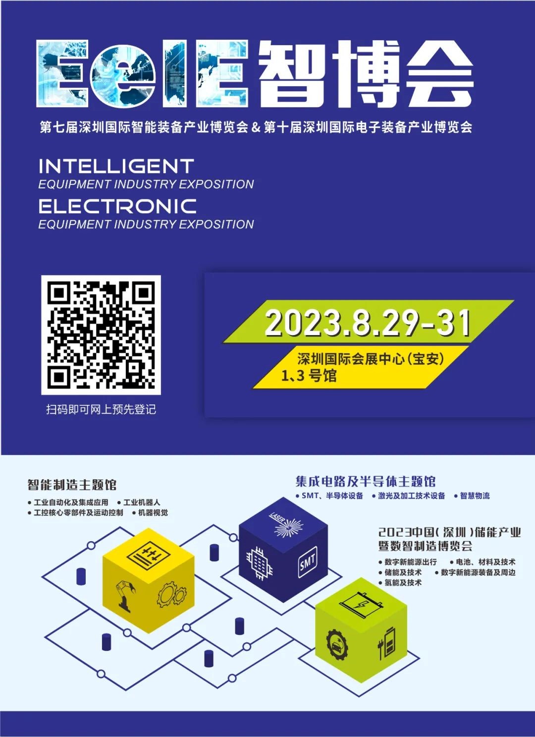 第七屆深圳國際智能裝備產業博覽會暨第十屆深圳國際電子裝備產業博覽會(簡稱EeIE),將于8月29-31日在深圳國際會展中心重磅啟幕。新起點,新征程,本屆展會開啟1、3號館;設置智能制造主題館、SMT及半導體主題館,新增新能源設備及配套板塊;儲能產業及數字制造、工業機器人及集成應用、工控核心零部件及運動控制、機器視覺、SMT及半導體設備、激光及加工技術設備、自動化設備七大主題呈獻裝備工業未來版圖。