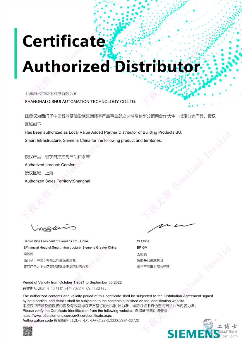 西門子***授權代理證書