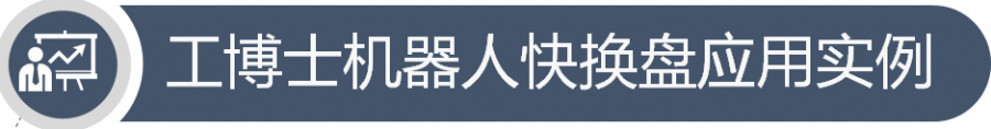機器人快換盤使單臺機器人能夠在制造和裝備過程中交換使用不同的末端執行器以增加柔性,被廣泛應用于自動點焊、弧焊、材料抓舉、沖壓、檢測、卷邊、裝配、材料去毛刺、包裝等操作,具有生產線更換快速、有效降低停工時間等優勢。使生產線更換可以在數秒內完成,維護和修理工具可以快速更換,降低停工時間,使用自動交換單一功能的末端執行器,代替原有笨重復雜的多功能工裝執行器。