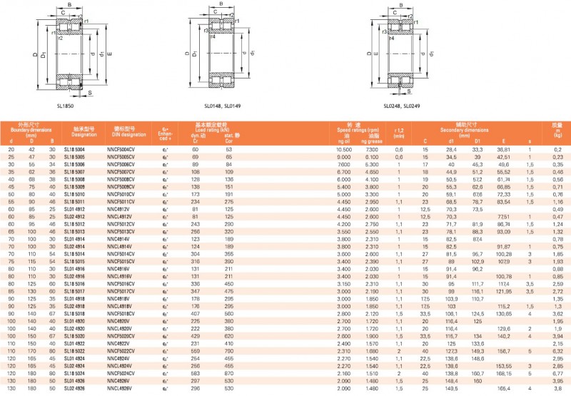 為了得到*大可能的滾動體數量,滿裝圓柱滾子軸承為無保持架設計。所以這類軸承具有極高的徑向承載能力和較高的剛性。然而由于其運動條件所限,這類軸承運行轉u速較低。