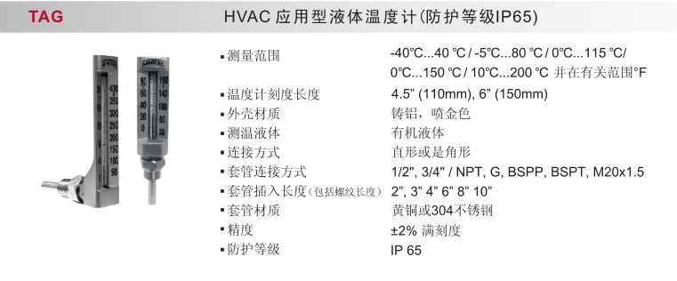 HAVC應用型液體溫度計(防護等級IP65)TAG