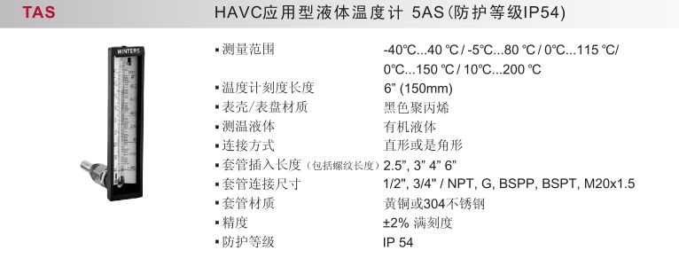 HAVC應用型液體溫度計5AS(防護等級IP54)TAS