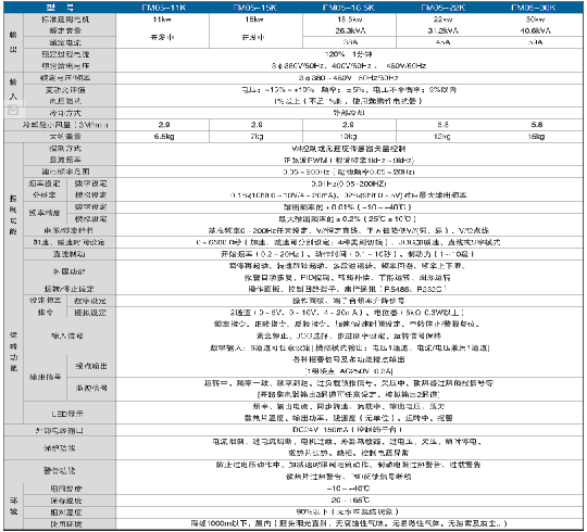 FM05系列:400V級三相輸入,11KW-30KW,過載120%min