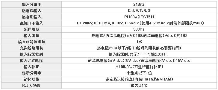 - 多種輸入(熱電阻,熱電偶,直流電壓)
