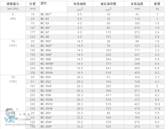 Enerpac恩派克 RC-101/RC-158/RC756, 單作用液壓油缸