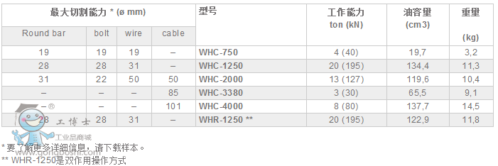 Enerpac恩派克 WHC-750/WHC-4000/WHR-1250,手持式液壓切割器