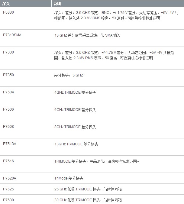 通過多種連接支持選件進行模擬/數字探測 為小器件引線或板上通孔提供靈活的探測解決方案,無需專用夾具及成本。業內*快的 33 GHz TriMode™探頭和 2.5 GHz 差分邏輯探頭。