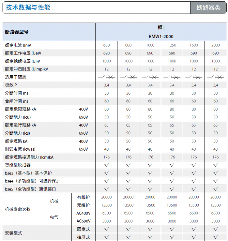 ◇交流額定電流630A~6300A; ◇短路分斷能力80kA~100kA(有效值);