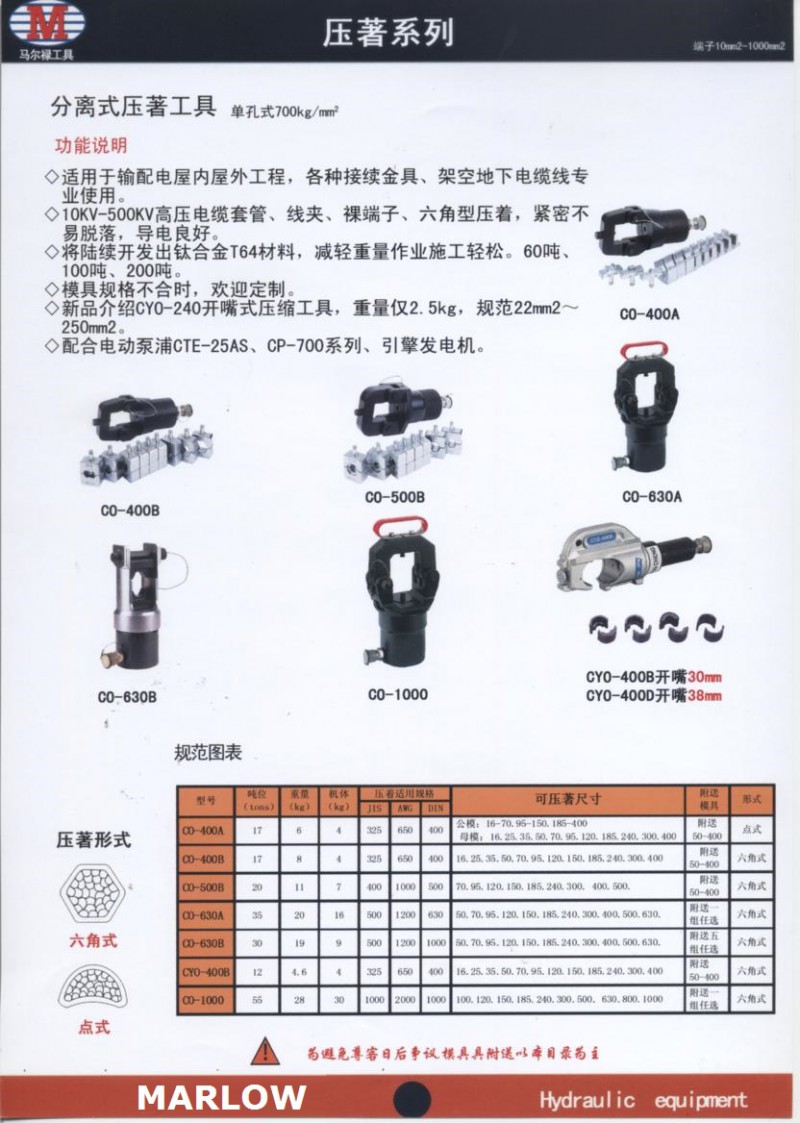 臺灣馬爾祿端子便利攜帶分離式壓接機CO-1000/630A
