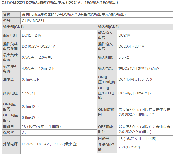 選擇漏型輸出或源型輸出。CJ1W-MD232提供負(fù)載短路保護(hù)功能。