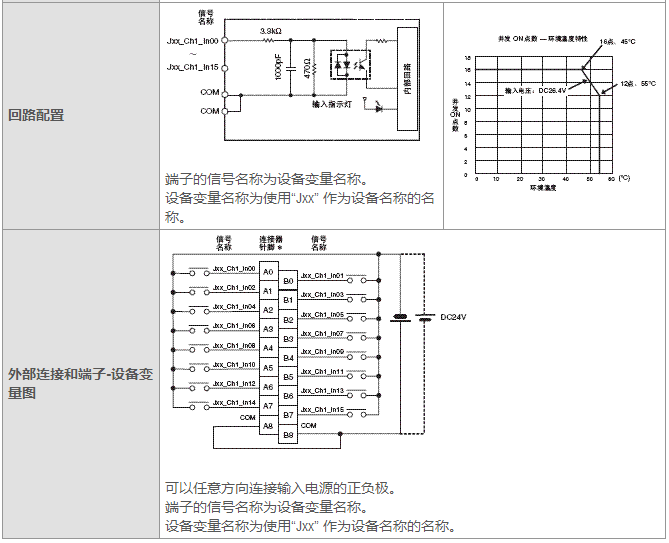 * 在外部連接和端子-設備變量圖中使用端子號A0~A8和B0~B8。它們未印在單元上。